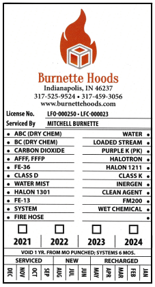 With every inspection, Burnette Hoods completes an NFPA 10 inspection form. This form ensures your Fire Extinguishers are up to date with all NFPA Codes. This provides the customer and the city with knowledge of all fire extinguishers in the building.